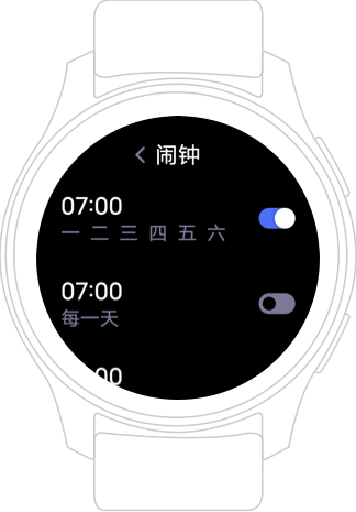 手表和vivo健康app上设置的闹钟是同步的,最多可设置5个闹钟。